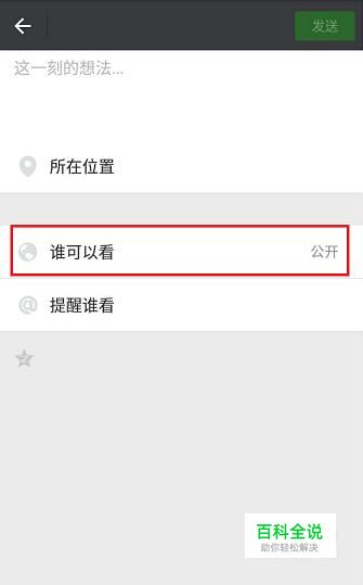 进入朋友圈编辑界面,点击“谁可以看”选项。