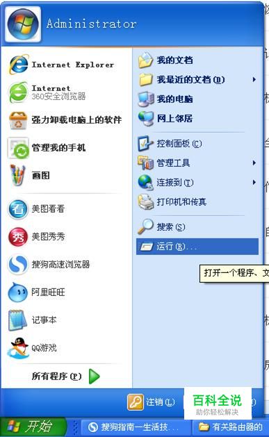在桌面左下角单击“开始”按钮,在弹出的菜单上选择右边的“运行”。