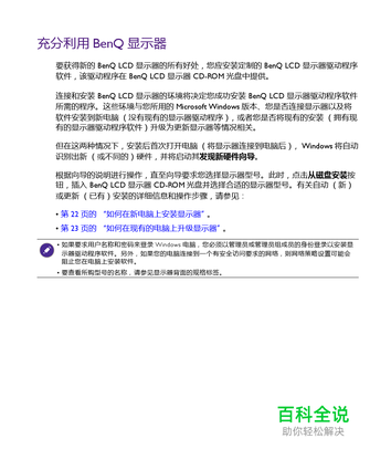 使用说明书是向人们介绍具体的关于某产品的使用方法和步骤的说明书。现在介绍的是明基RL2450H液晶显示器说明书。
