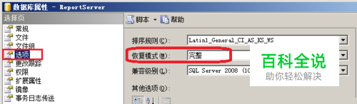 确认恢复模式 以下是使用 SQL Server Management Studio 检查数据库的恢复模式,如下图所示: