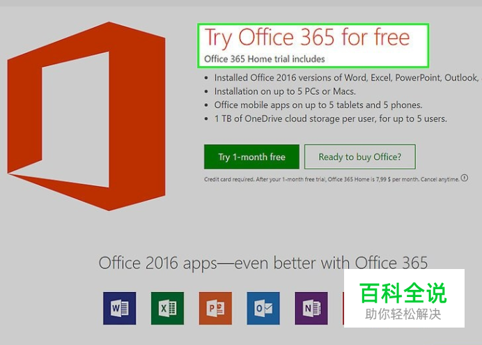取得试用版。微软Office是可试用的,上到微软官方网站http://office.microsoft.com/en-us/try/ ,您可以得到一个月免费的试用。点击上面写着“开始享受一个月的免费”的绿色按钮就开始这一进程。 一个月试用包括一个整套全功能的Microsoft Office程序,再加上一些额外礼品,如60分钟打任何电话的免费Skype通话时间。如果试用期间软件升级了,它会自动适用于您的Office版本。