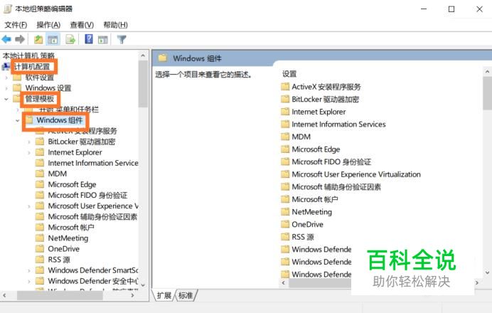 进入之后就会出现一个页面,上面写着本地组策略编辑器,然后在点击计算机配置、管理模板、windows组件。