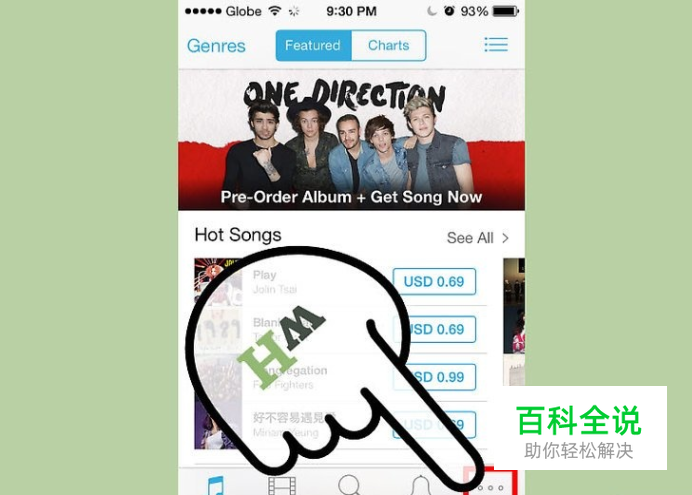 用手指滑动屏幕,查看过去的购买记录。你也可以输入搜索内容,找到下载的记录。根据你选的类别不同,可能要点击艺术家、电视节目或电影名等。