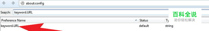 在搜索区搜索"keyword.URL",只有一个结果出现。