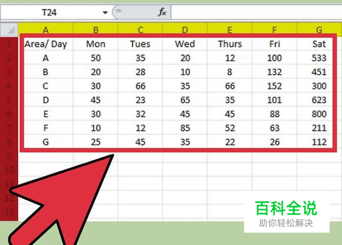 将数据以表格的形式输入到Excel的空白工作表中。这些数据要有行标题和列标题,数据位于中间,以充分利用表格功能。 在Excel中,“列”指的是垂直高度。你可以看一下上面的图片,列都是用字母标注,从上到下分别是A、B、C等等。 “行”指的是水平距离。行用数字标注,从左到右分别是1、2、3等等。