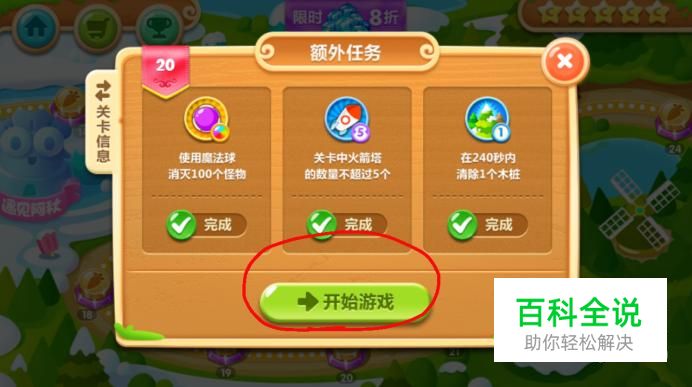 首先进入游戏,我们可以看一下,第二十关的三个隐形的要求。然后点击开始游戏。如下图所示。