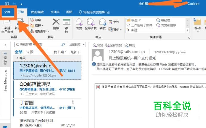 打开Outlook,在上方工具栏中找到文件选项,然后点击