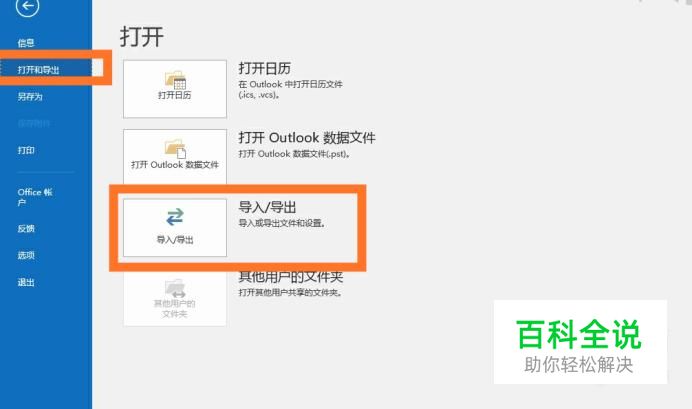 在左侧菜单栏中找到打开和导出,单击进入,再点击导入与导出选项