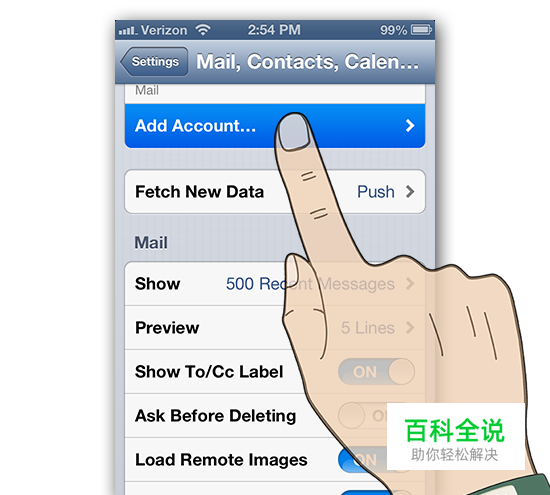 打开邮件、联系人和日历。点击设置,在里面找到这个选项。