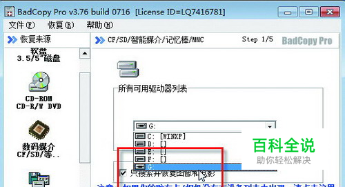 首选将存储卡与电脑连接,系统正确识别出存储卡后,运行Recover My Files软件。点击“修复驱动器”图标(如图5),单击“下一步”按钮,选择存储卡的盘符后,点击“下一步”按钮。