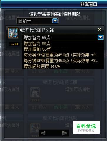 头部装扮和帽子装扮:由于暗枪士是魔法输出型职业,所以在这两个部位的属性选择上,我们优先选择智力的加成,提高角色的输出能力;想要追求连招流畅性的小伙伴,也可以选择增加施放速度的百分比。