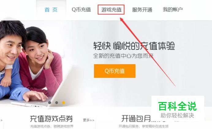 首先,打开腾讯充值中心官网页面,点击页面顶部“游戏充值”菜单选项。