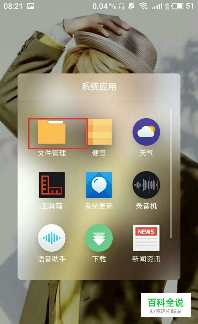 使用文件管理。在手机桌面上都有自带的文件管理器,点击打开。