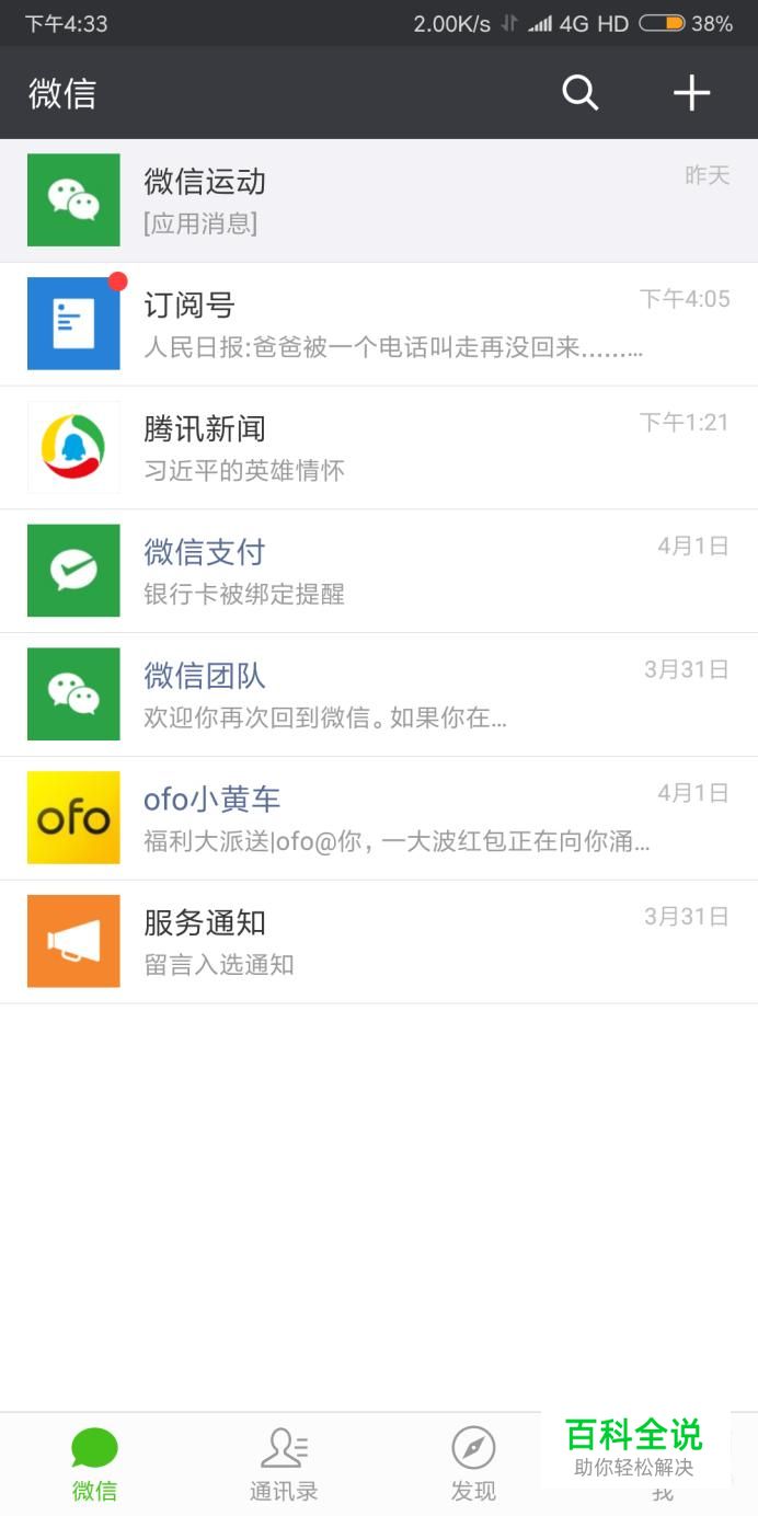首先打开我们的微信,搜索并关注微信官方的公众号平台”微信团队”。