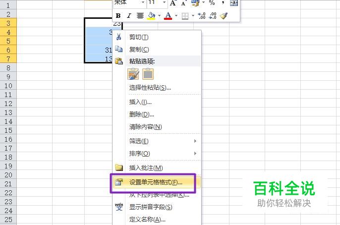 我们选中这些单元格,然后右击选择设置单元格格式;