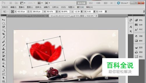 现在选择工具栏中第一个选项,然后将玫瑰拖到要还的背景图里