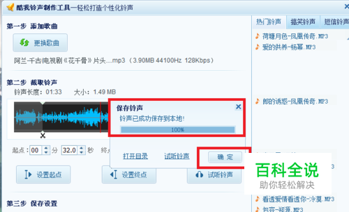 对于初次制作铃声的音乐客户端来讲,在你点击“制作铃声”后,就会弹出一个“下载应用”的对话框,这里大家不用去管,系统很快就会下载完毕。 随后,就出现了铃声制作的编辑页面。