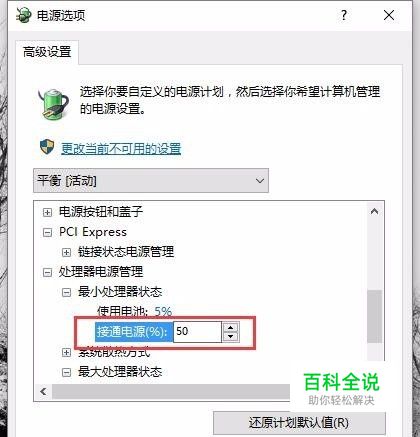 右键任务栏电源图标-电源选项-平衡 更改计划设置-更改高级电源设置-处理器电源管理- 最小处理器状态