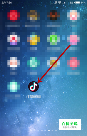 打开手机,在手机的桌面上找到抖音短视频app并打开,如图所示。