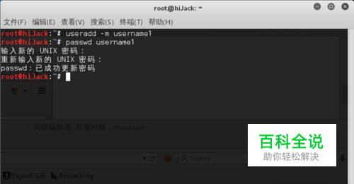打开终端。输入下面这个命令,即可创建新用户(把username1换成你想要的用户名称)。 useradd -m username1
