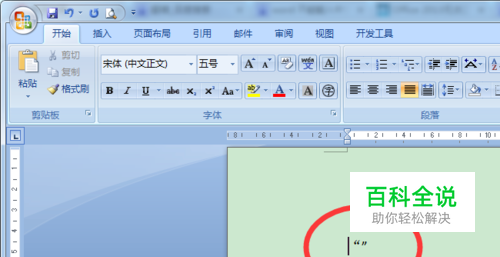 修改好了之后,再将光标移到右边引号的右侧,按回退键(Backspace)删除此引号。 此时留意一下,如果左上角的字体又变成了“Calibri (西文正文)”,只需要再次进行步骤4、5修改成宋体。