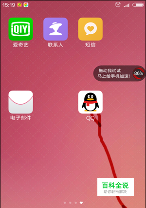 在左右滑动回到QQ在的那个页面,将QQ拖到最下面一行里。