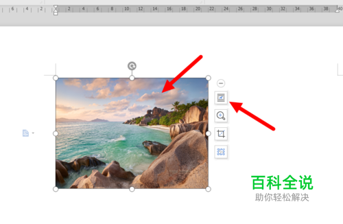 想要移动图片,需先用鼠标点击一下该图片,这时除了图片四周出现几个小圆圈(用来改变图片大小)外,图片右侧还出现了一列工具栏。找到上面第一个工具图标(这个叫“布局选项”图标,里面好像有只小马那个),鼠标点击一下它。