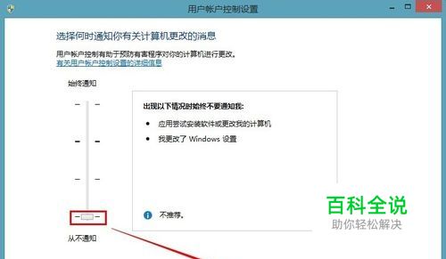 进入【更改用户账户控制】界面,按图下所示操作即可取消该提示: