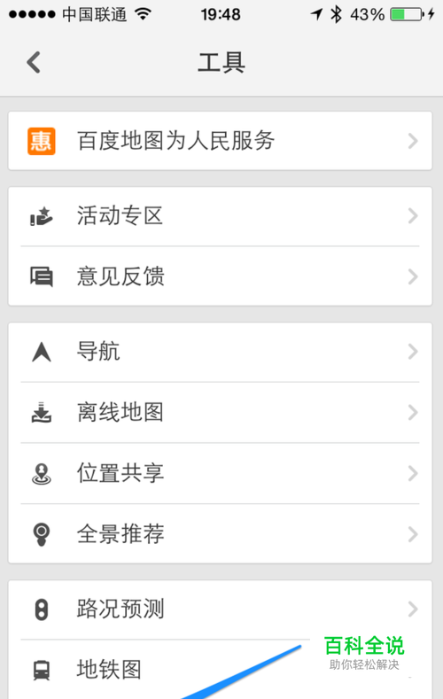 打开百度地图以后,点击屏幕右下方的 “工具”按钮,如图所示