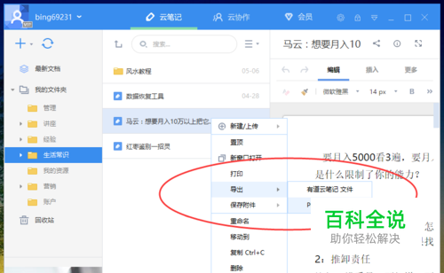 有道云笔记怎么导出文档为PDF文件