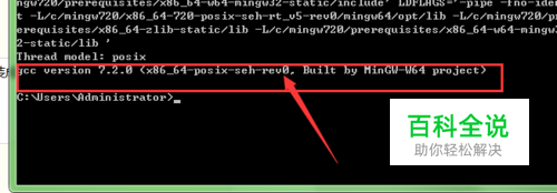 我们在命令行输入 g++ -v ,查看安装的版本。如果安装成功,会出现结果。
