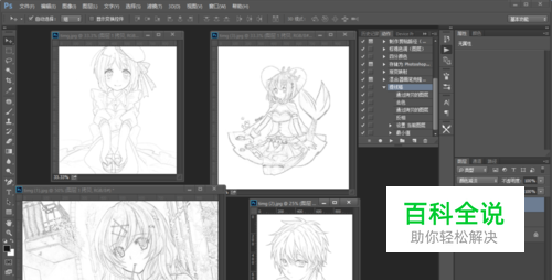 我们在顶部点击切换其他图片,可以看到所有的图片已经都变成了线稿啦~是不是很简单呢?是不是觉得好省时间啊。