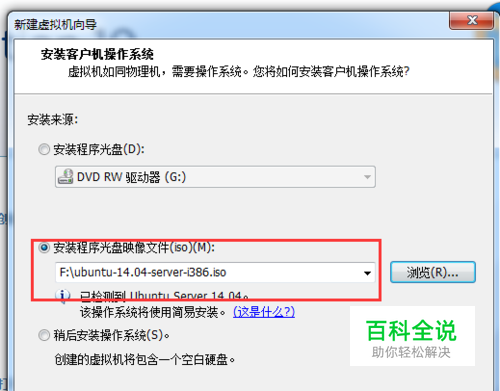 新建虚拟机,选择Ubuntu安装文件ubuntu-14.04.1-server-i386.iso。