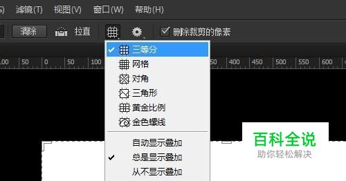 在使用裁剪工具的时候,裁剪工具的叠加选项默认的是三等分构图。