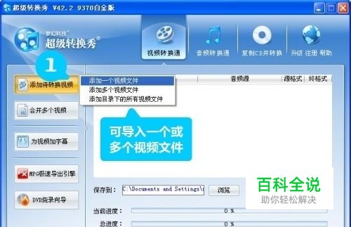 导入FLV视频文件。 软件支持将FLV视频转换成其他视频格式,也支持将各种视频格式转换成FLV格式。对FLV视频的解码、编码操作步骤大同小异,本文以将其他视频格式转换成FLV格式为例进行讲述。如下图所示,我们点击标签1-“添加待转换视频”按钮即可将视频文件快速导入~