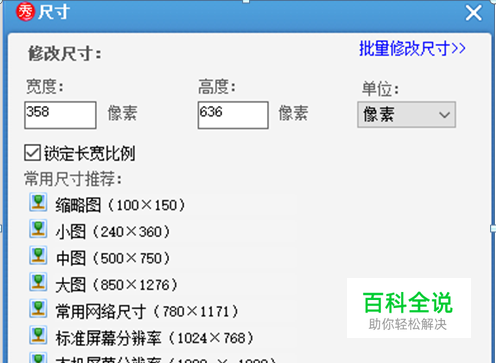 2、修改尺寸,宽度358像素(锁定长宽比例)点击应用;