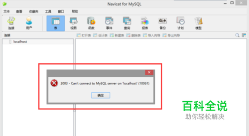 当MySQL服务没有开启时,Navicat for MySQL连接不上数据库服务,会出现如下提示