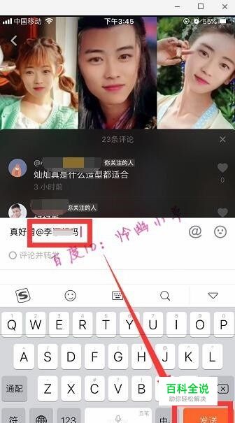 输入想说的话,点击右边的@字样,然后就可以搜索或直接选择联系人了,这样就成功@召唤了好友。
