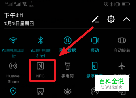 解锁我们的华为P10手机,进入华为系统界面后,我们下滑通知栏,点击NFC图标,将手机的NFC功能打开,因为模拟门禁卡是通过NFC实现的 。