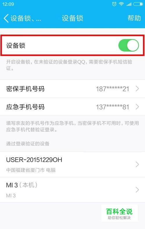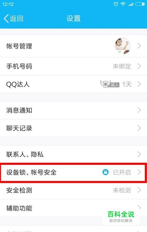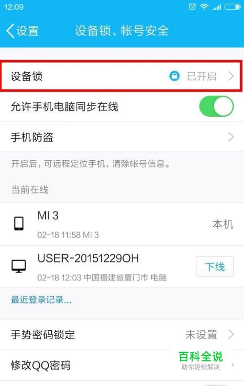 进去之后我们往下啦点就看到.设备锁.账号安全.我们点击打开. 如图