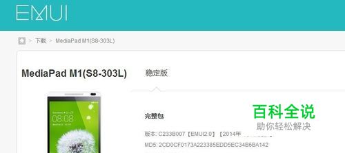 登录华为EMUI网站,下载 MediaPad M1 系统升级包