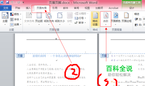 选择页面布局、如图2 ,找到水印、如图3 (不同的版本,可能水印按钮位置不同需自己寻找)