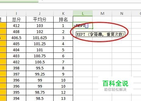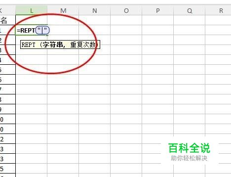 在需要显示条形图表的空白单元格输入函数,=REPT(),其实这个本身就是输入重复次数的。