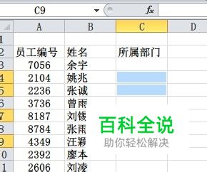如下图所示,现在需要向「所属部门」一列填入不同部门。