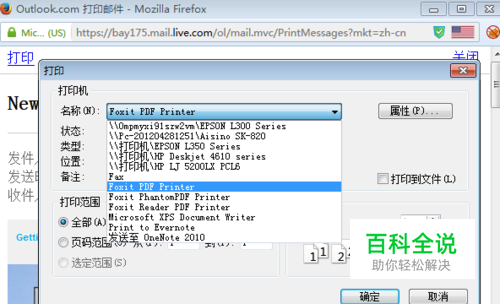 在打印界面进行选择打印机等操作后,点击确定,即可完成邮件的打印。如图