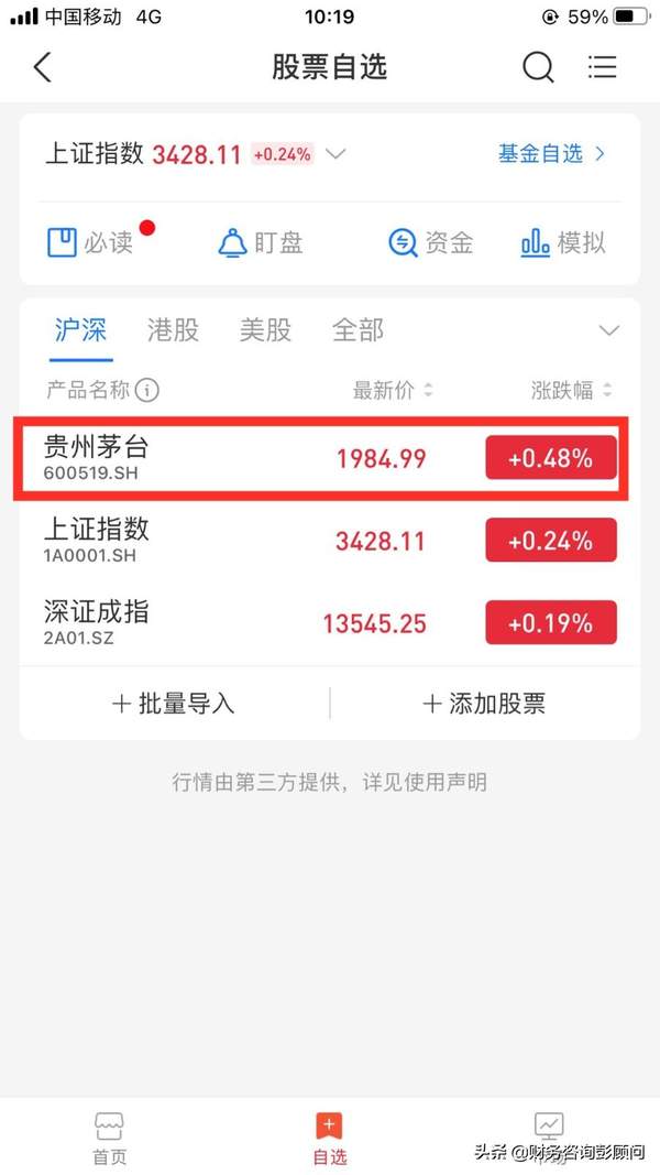 步骤7、添加到自选后,就可以在自选界面看到感兴趣的股票的最新股价了,点击后还可以查看具体走势。