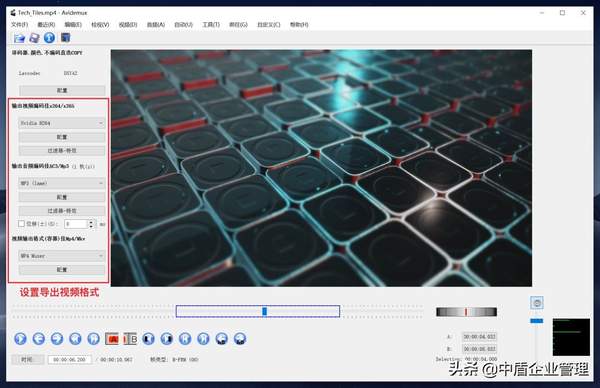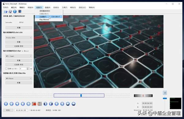不同于常见的剪辑软件,Avidemux的界面布局显得有些特殊,左侧栏设置导出的音视频格式,而原本的素材导入则隐藏在了顶部的选项卡中。