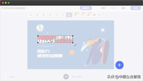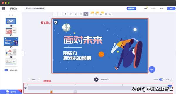 下面是视频模板的编辑界面,如果你经常用PPT的话,会发现编辑界面和PPT非常像。