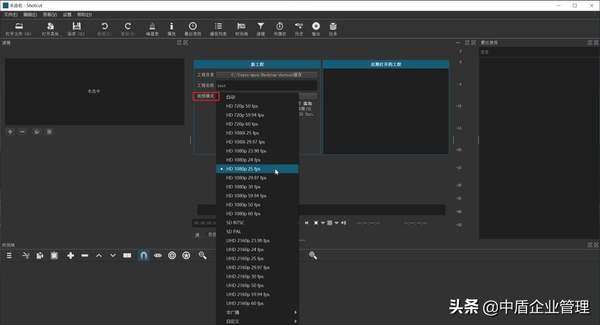 在Shotcut新建项目时,需要先设置视频模式,即设置视频的尺寸和帧率,HD代表高清,UHD代表超高清。