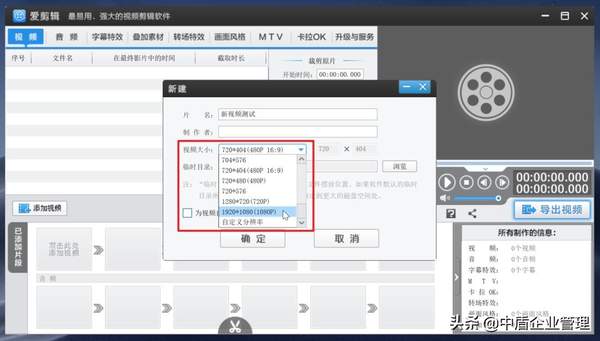 每次打开爱剪辑,需要先设置视频的大小,一般设置为720p或1080p,且上方的制作者为必填项,因为最终导出的视频片头会包含制作者的名称。